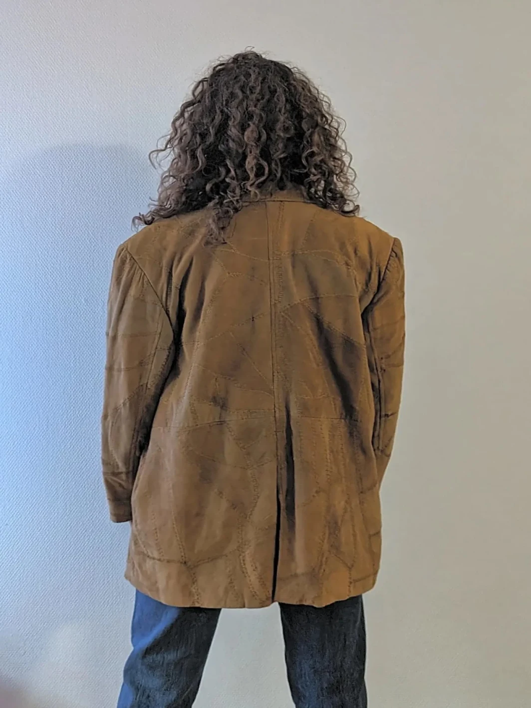 Vintage Light Brown Suede Coat | Shoulder Pads | Unisex Large | Versatile Wear