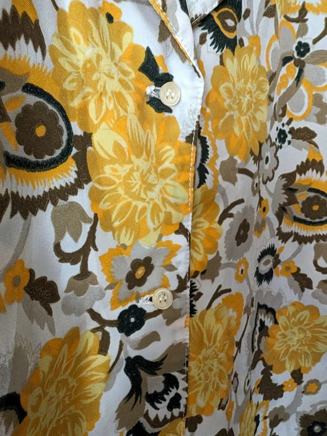 Vintage Nina Hazan Spring Top | 1970s | Yellow & Brown Florals