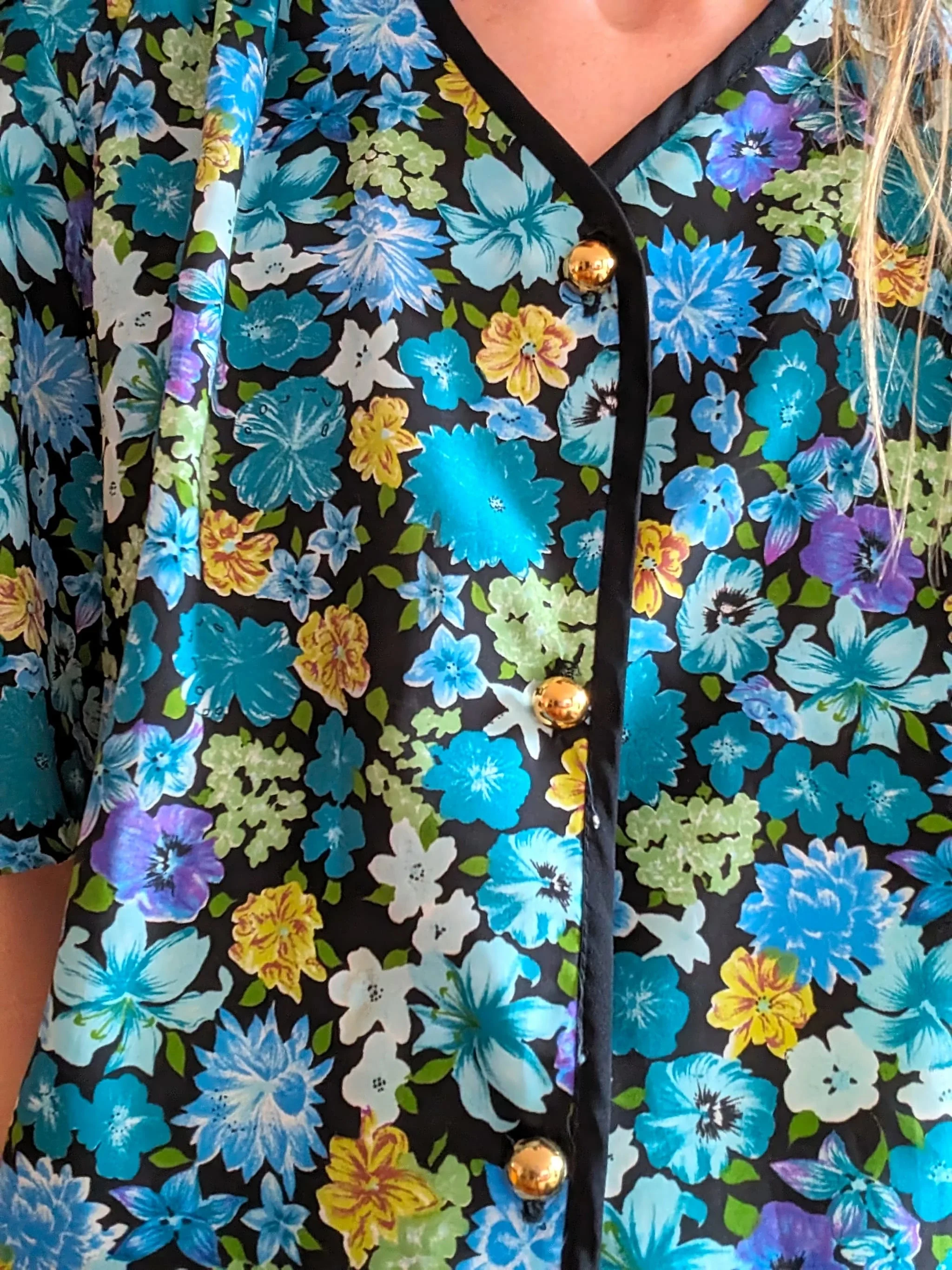 - Statement 80s Floral Top | Party Ready | Gold Button Detail | L
