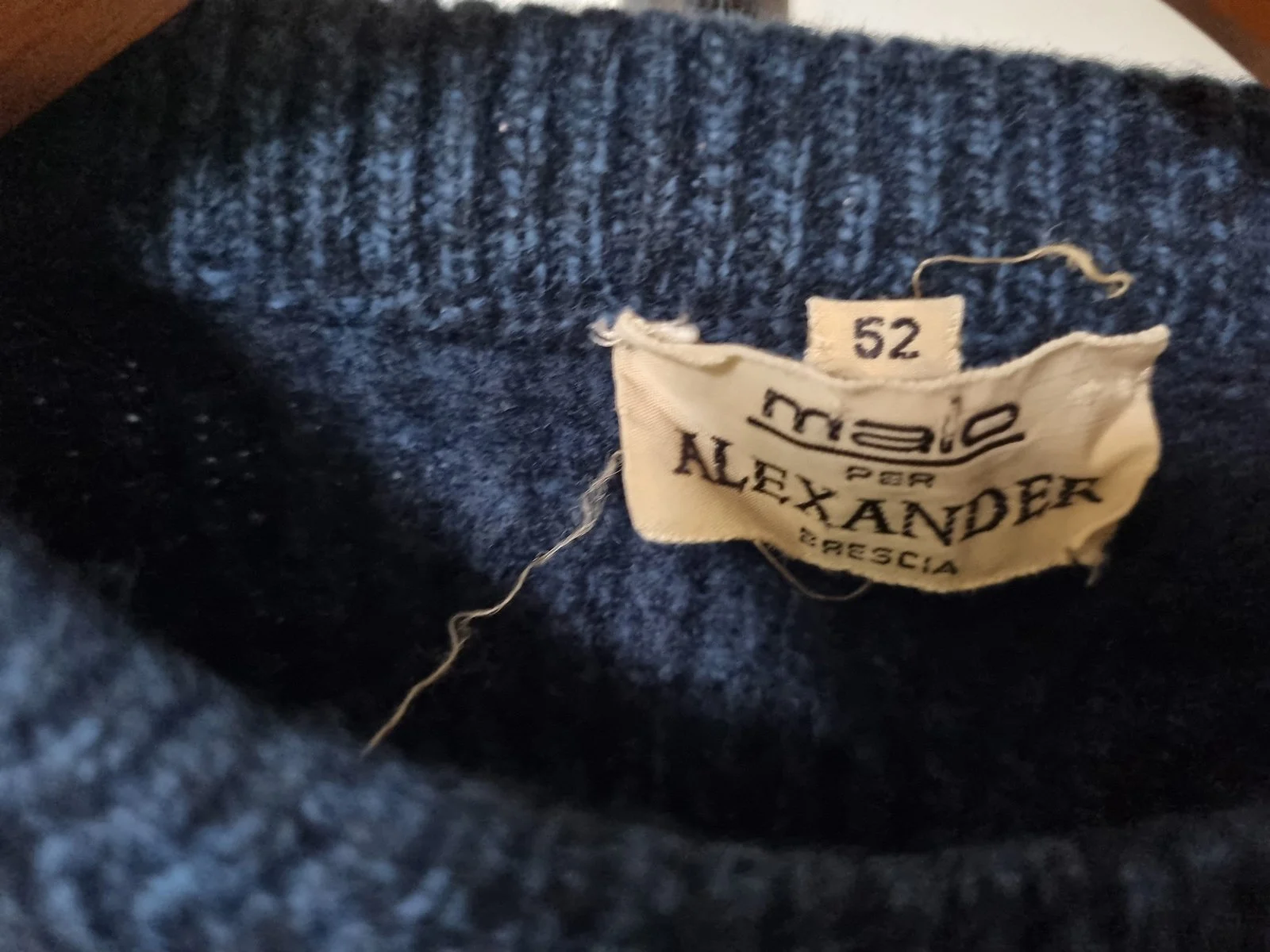 Embrace the charm of the 1970s with this vintage Maio Per Alexander wool sweater. Crafted in Brescia, Italy, this piece is a testament to timeless fashion. Its plain design and long sleeves make it a versatile addition to your wardrobe, perfect for both formal events and casual outings.