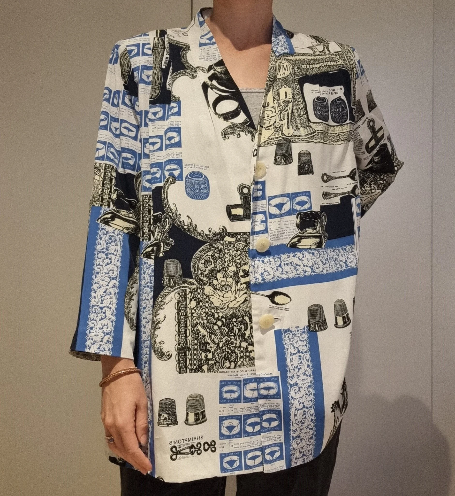 It has two buttons in the front, of which one can be used to close the coat. On the inside there is a hidden button that helps to keep the coat closed. Want to know more about the details? Look at the photos and the video to see more. For measurements, see below. Please double the cms where the circumference is needed.